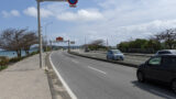 これは塩屋海岸に降りる坂道です。崖を削って坂道を通したことがわかります。